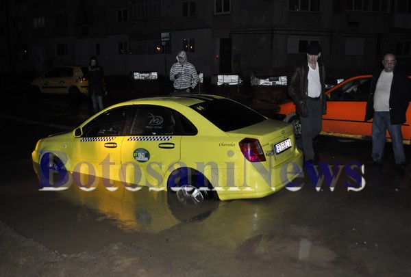 Caz incredibil pe o stradă din municipiul Botoşani. Un autoturism taxi a fost „înghiţit”, miercuri seară, de o groapă imensă în asfaltul unei străzi. Incidentul a avut loc în cartierul Alexandru Donici, unde o firmă din Suceava, care executa lucrări pentru societatea de termoficare din Botoşani, a lăsat nesemnalizat un şantier întreg. Pe fondul ploii […]