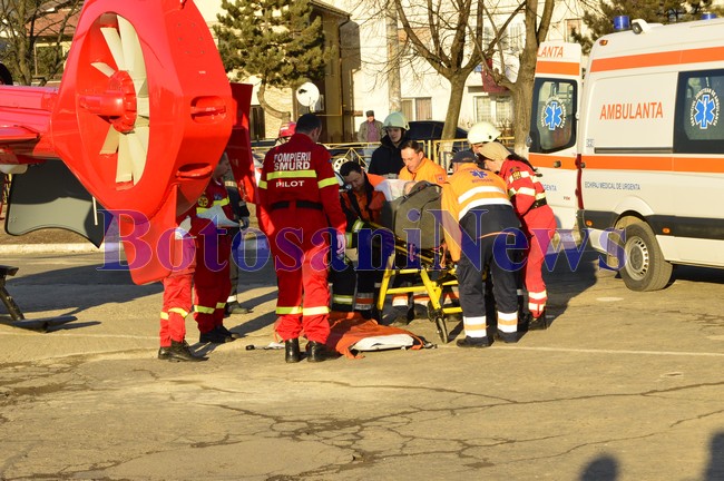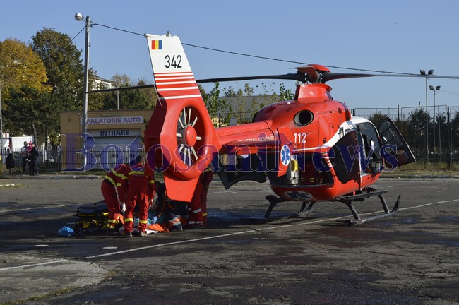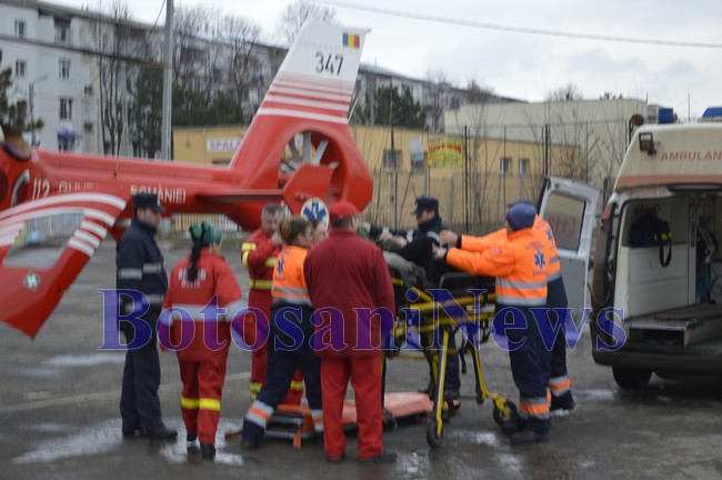 O femeie, aflată în stare gravă, a fost transportată, miercuri după amiază, cu un elicopter SMURD la Iaşi. Maria Rohozneanu, de 72, din Copălău a suferit un infarct, iar medicii botoşăneni au solicitat elicopterul pentru transportul la Iaşi. Aparatul de zbor a preluat pacienta de la poligonul ACR şi a transportat-o la Iaşi.