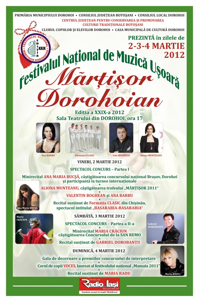 Pregătirile pentru Festivalul Mărțișor Dorohoian sunt în toi. Au fost aleși deja artiștii care vor cânta în recital!