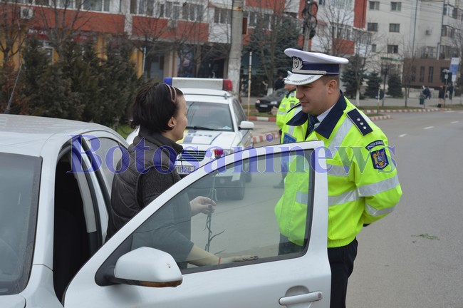 FOTO Şoferiţele au fost „amendate” de poliţişti cu flori