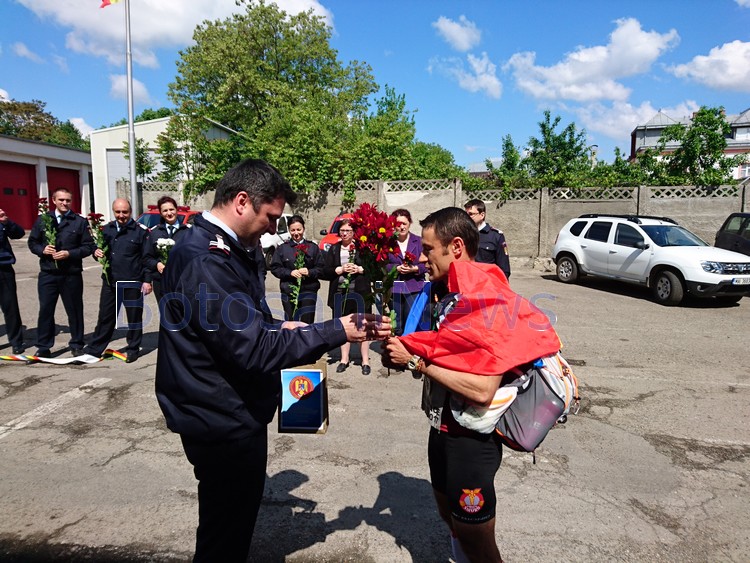 FOTO! Iulian Rotariu, pompierul care a ocupat poziţia a patra la ultramaratonul „Sahara Race”, așteptat cu flori de colegi