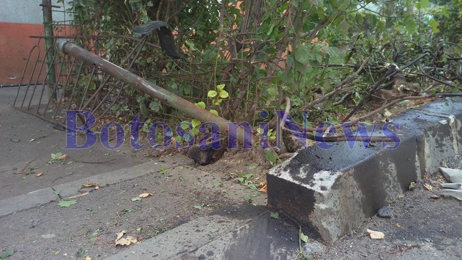 FOTO A rupt un gard cu maşina, a izbit un autoturism parcat şi apoi a fugit