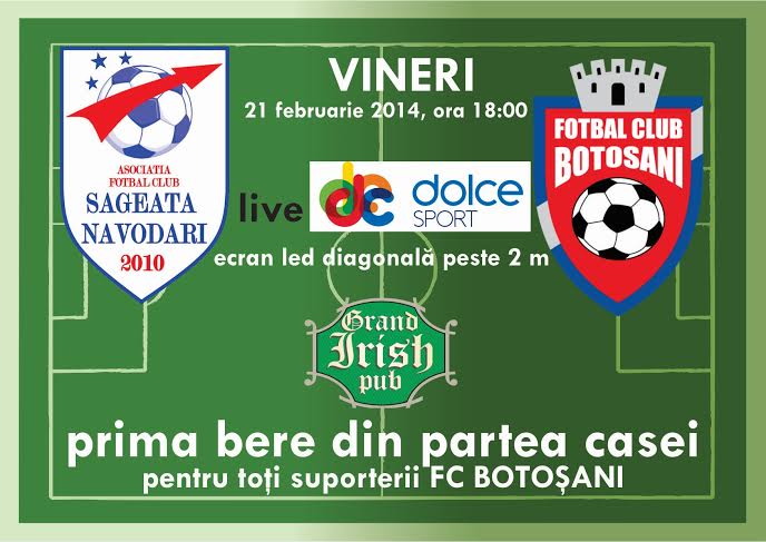 Un pub din Botoşani va oferi, vineri seară, la meciul dintre Săgeata Năvodari şi FC Botoşani câte o bere gratis pentru fiecare suporter al formaţiei botoşănene. Cei care vor merge să vadă prima partidă oficială din acest an la Grand Irish Pub primesc prima bere gratis. Meciul va putea fi urmărit, de la ora 18.00, […]