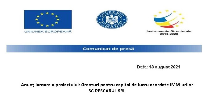 Anunţ lansare a proiectului: Granturi pentru capital de lucru acordate IMM-urilor- SC Panayotiss SRL
