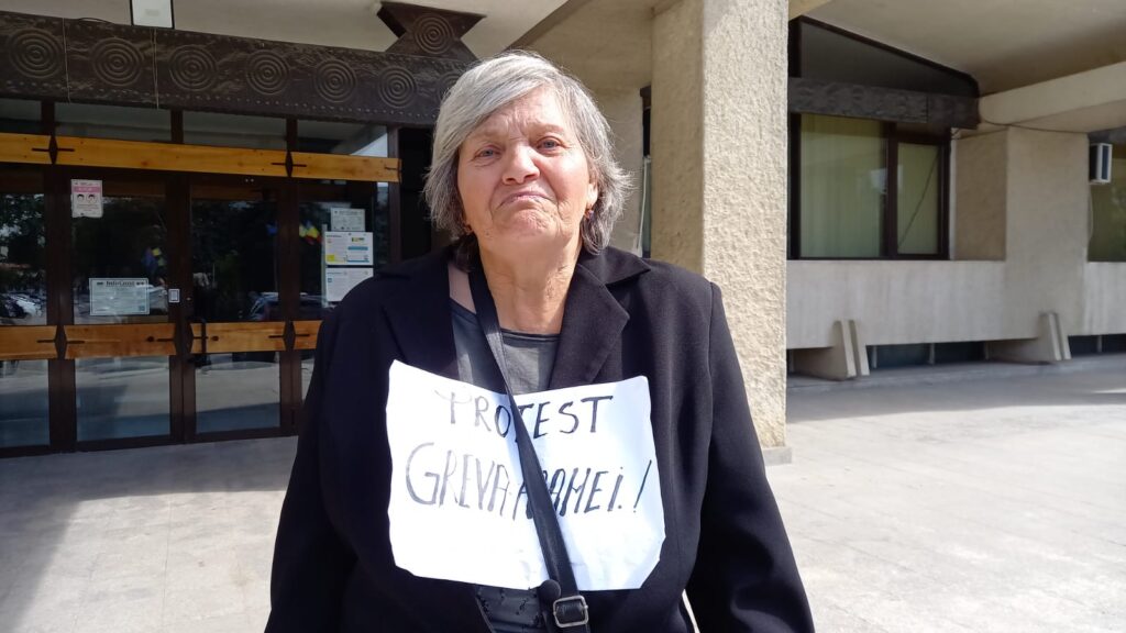 FOTO Femeie în greva foamei în faţa Primăriei din cauza unui teren