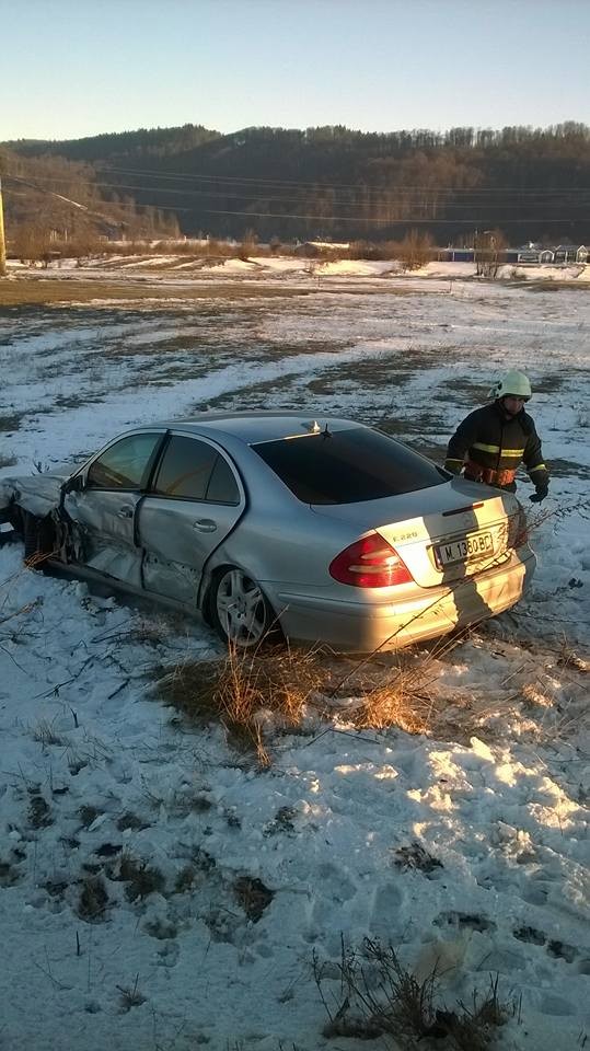 FOTO Accident cu trei maşini la Gura Humorului. Maşina unui botoşănean aruncată de pe carosabil