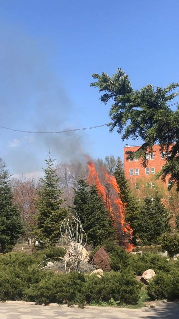 Incendiu, duminică, într-un parc din municipiul Dorohoi, aflat în vecinătatea Spitalului municipal din localitate