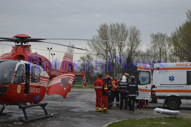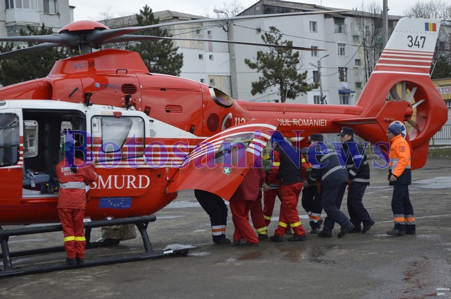 Un bărbat de 75 de ani a fost transferat, sâmbătă dimineață, de la Spitalul Judeţean Mavromati la o clinică din Iaşi cu un elicopter SMURD. Mihai Mihălăchiței a suferit un infarct. Pentru că nu se putea transporta în condiţii de siguranţă cu ambulanţa terestră, medicii botoşăneni au solicitat elicopterul SMURD.
