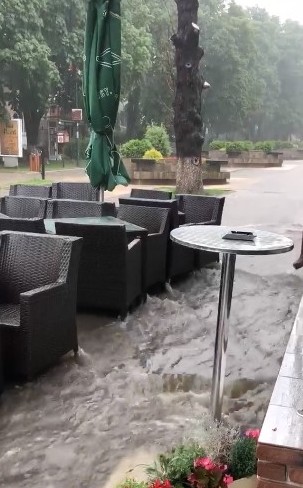 Pietonalul Unirii a fost inundat din cauza ploilor torențiale. Angajații restaurantului
