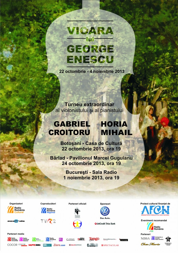 În perioada 22 octombrie – 4 noiembrie 2013 se va desfăşura cea de-a doua ediţie a turneului „Vioara lui George Enescu”, cu violonistul Gabriel Croitoru şi pianistul Horia Mihail. Violonistul Gabriel Croitoru are privilegiul de a cânta pe vioara Guarneri del Gesu pe care a cântat George Enescu (instrument pus la dispoziţie şi aflându-se în patrimoniul Muzeului […]