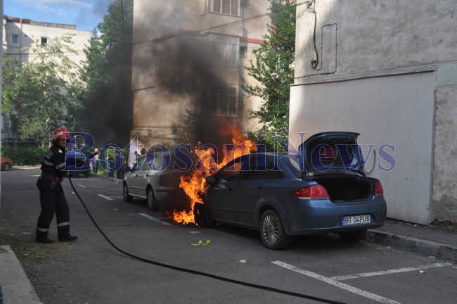 Exclusiv! VIDEO spectaculos cu cele două maşini care ard ca nişte torţe într-un cartier din Botoşani