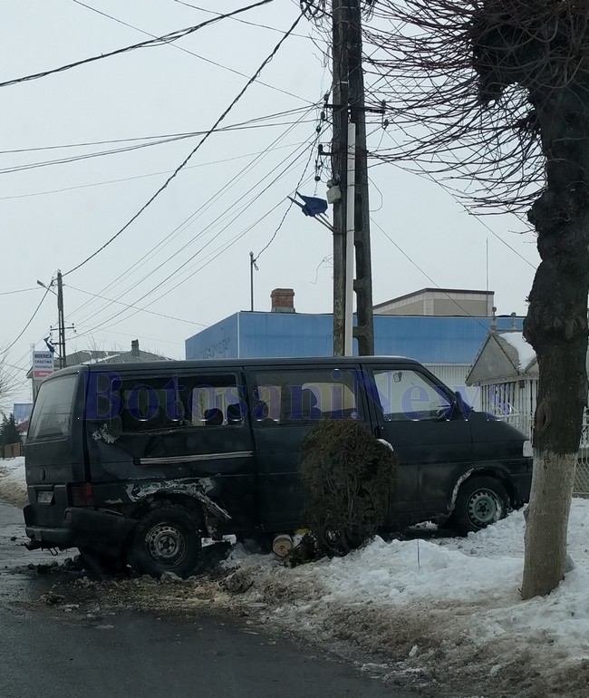 FOTO Accident la Darabani. Microbuz izbit într-un copac