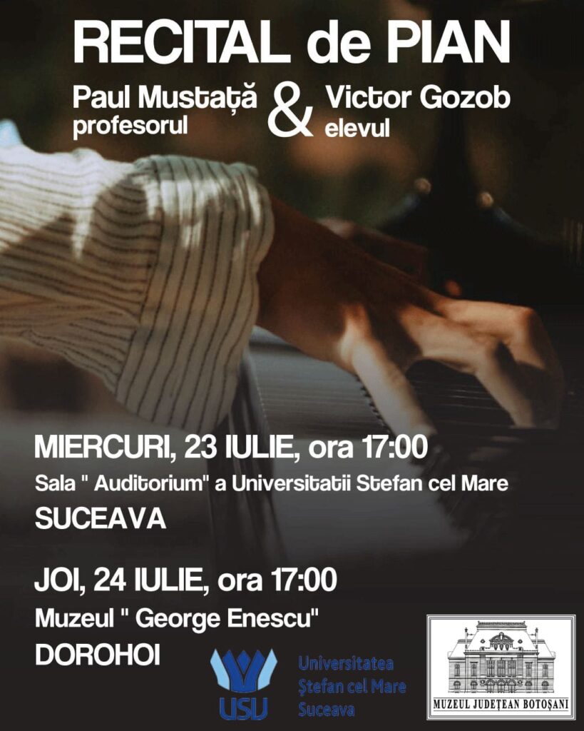 Recital la Muzeul Memorial „George Enescu” din Dorohoi. Profesorul și studentul vor performa împreună 24 iulie 2025 …