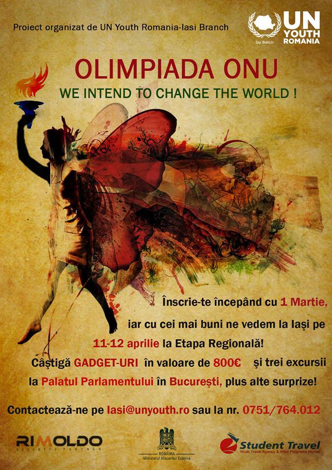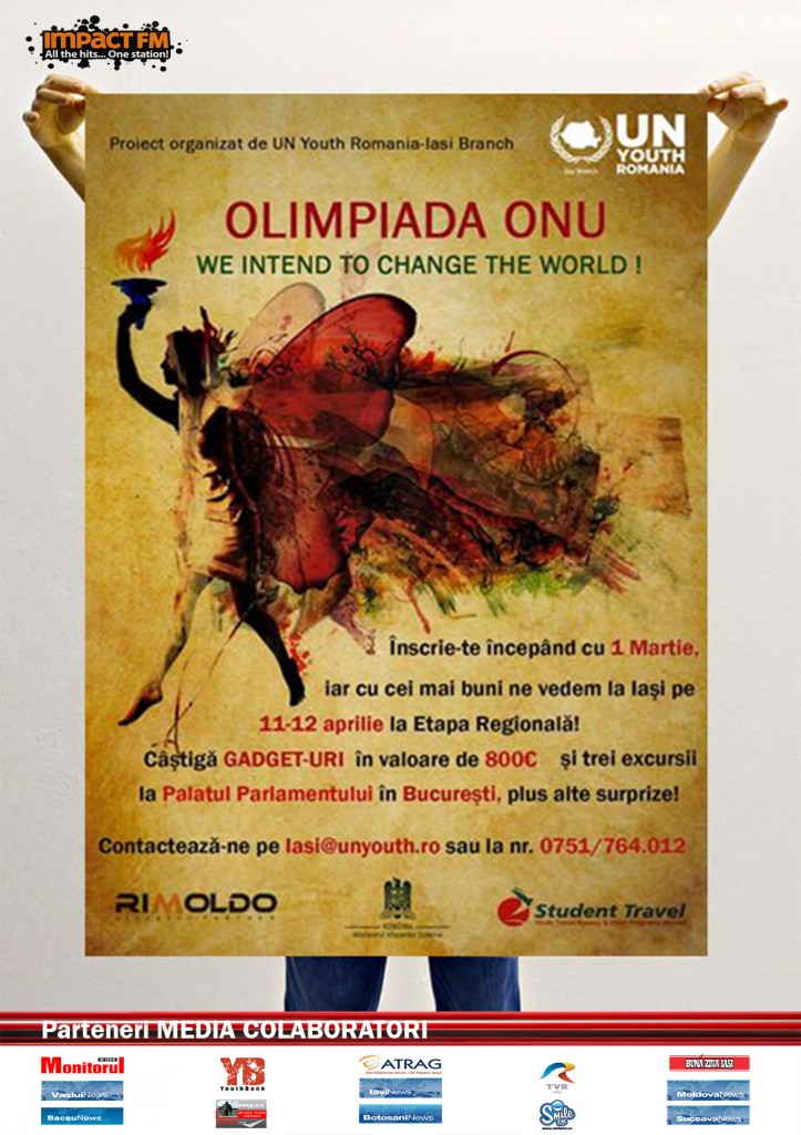Tinerii din mai multe judeţe ale Moldovei sunt aşteptaţi la Olimpiada ONU. Asociația Tineretul ONU – Filiala Iași organizează în perioada 1-18 martie prima etapa a concursului Olimpiada ONU în județele Suceava, Botoșani, Iași, Bacău și Vaslui. Doritorii de a participa trebuie să răspunda la următoarele întrebări: Ce reprezintă ONU? Care sunt direcțiile spre care […]