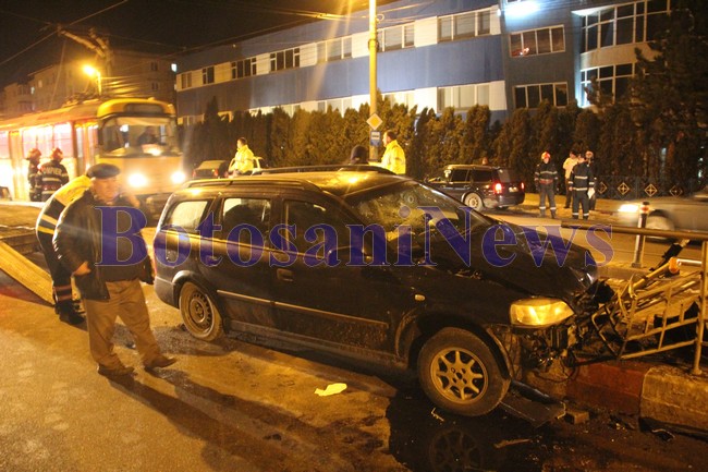 Maşină făcută praf după ce s-a înfipt într-un refugiu pentru tramvai