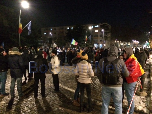 Aproximativ 30 de botoșăneni au ieșit, luni seară, la proteste în Piața Revoluției. Oamenii cer demisa Guvernului. ”Nu vrem penali în fruntea țării!” și ”Vrem guvernanți pentru popor!” sunt lozincile scandate de aceștia. Pentru că numărul manifestanților este destul de mic, marșul care se desfășurea pe străzile din Botoșani ar putea fi anulat.