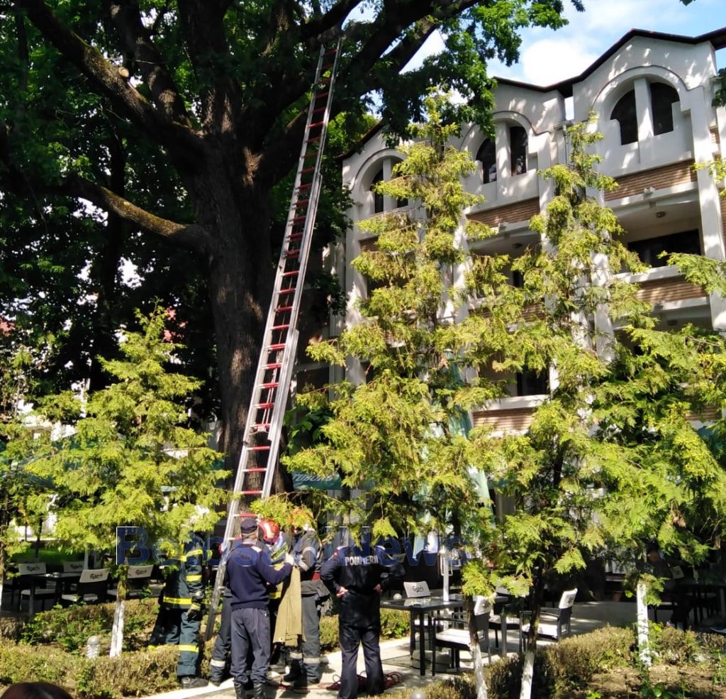 VIDEO Misiune specială! Pompierii au urcat în copac să salveze un animal