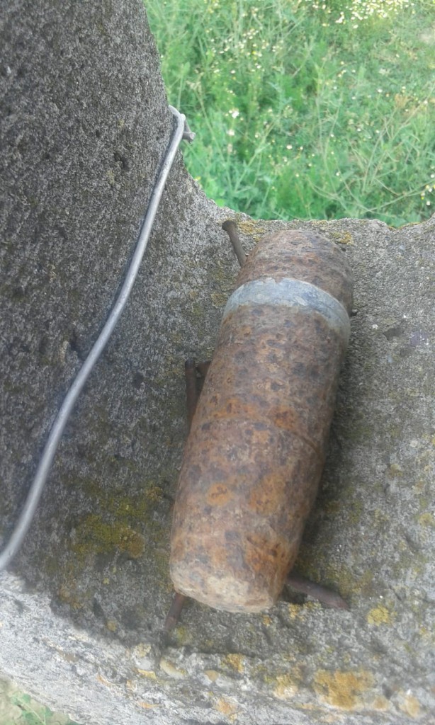 FOTO Proiectil descoperit de un botoșănean în timp ce săpa în vie