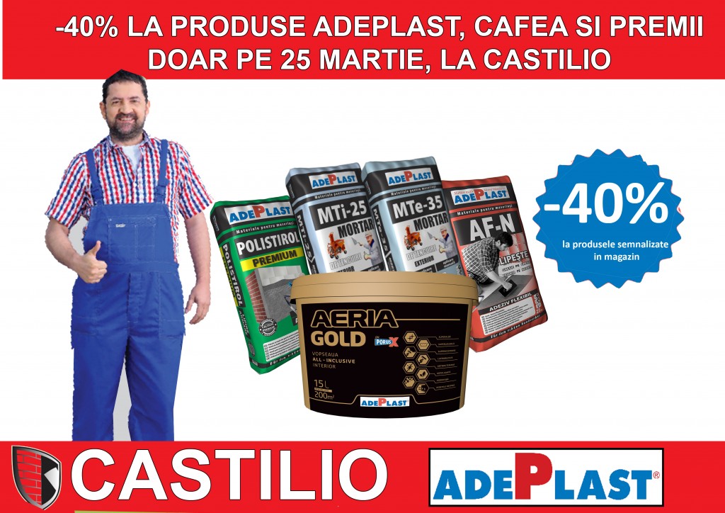 -40% la produse Adeplast, cafea şi premii doar vineri, 25 martie, la Castilio. Vezi în premieră reducerile!