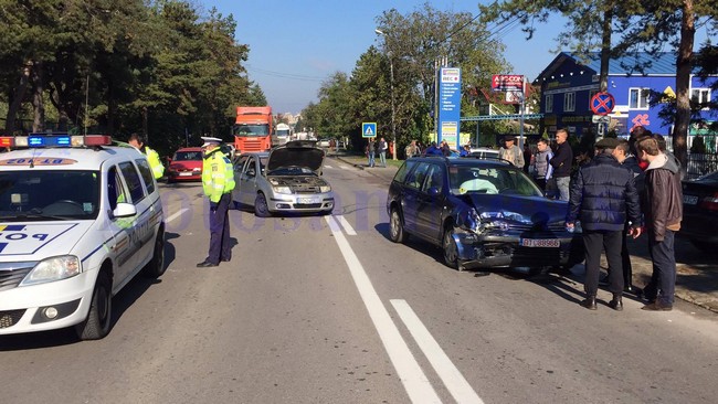 FOTO Accident într-o intersecție aglomerată din Botoșani. Două mașini au fost avariate. Un șofer ușor rănit