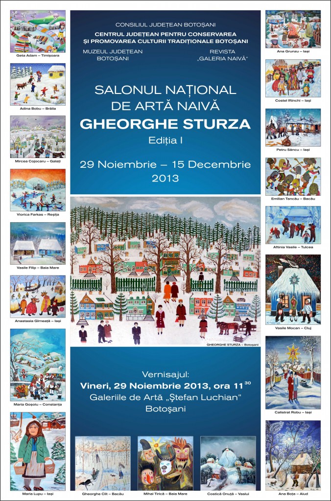 Centrul Judeţean pentru Conservarea si Promovarea Culturii Tradiţionale Botoşani, în colaborare cu Revista „Galeria naivă” şi Muzeul Judeţean Botoşani, organizează Salonul Naţional de Artă Naivă „Gheorghe Sturza”, Ediţia a III-a, în perioada 7-28 noiembrie 2015, la Galeriile de Artă „Ştefan Luchian” Botoşani. Artiştii invitaţi expun lucrări ale căror abordări tematice sunt pline de diversitate, opţiunile […]