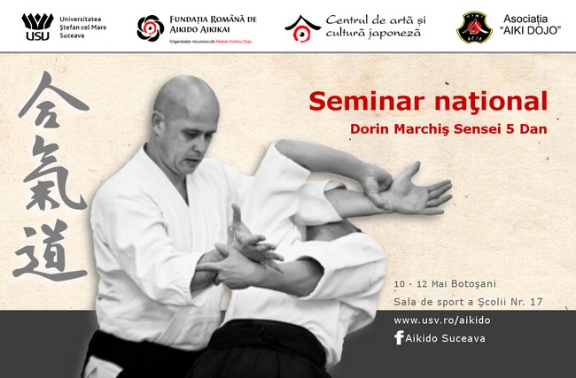 Asociaţia Aiki Dojo- secţia Botoşani organizează, în perioada 16 – 18 mai 2014, Seminarul Naţional de aikido aikikai condus de sensei Dorin Marchiş 5 dan, preşedintele Fundaţiei Române de Aikido Aikikai, la Sala Polivalentă „Elisabeta Lipă” Botoșani. Manifestarea este organizată în cadrul Proiectului „Educație prin Aikido” cu sprijinul Primăriei Botoșani și reunește în acest an un număr mare de practicanți […]