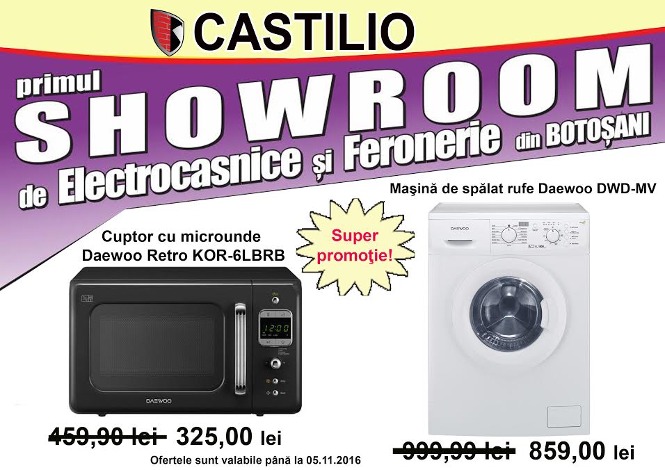 Vezi reducerile pe care le pregăteşte Castilio la deschiderea primului Showroom de Electrocasnice şi Feronerie din Botoşani!