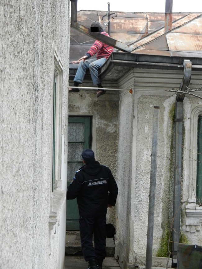 Foto! Un tânăr s-a urcat pe o casă şi a ameninţat că se sinucide. Vezi motivul