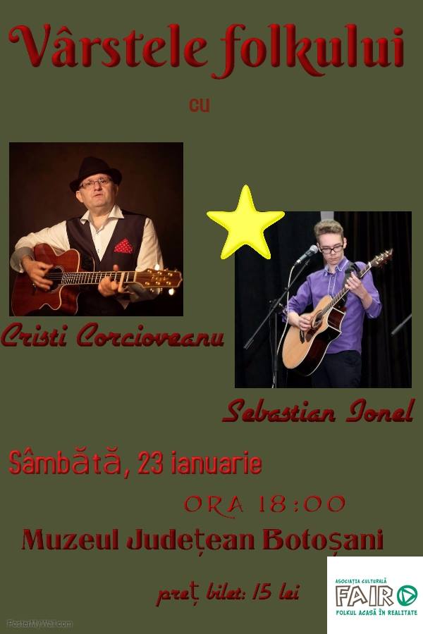 Un profesor de fizică din Tecuci, pasionat de folk, cu un album muzical recent lansat de Asociatia F.A.I.R Play, va sustine un concert la Botosani, pe data de 23 ianuarie, de la ora 18.00, la Muzeul Judetean. Este vorba despre Cristi Corcioveanu din Tecuci al cărui album se numește „Cântece de proprietar” și va cânta […]