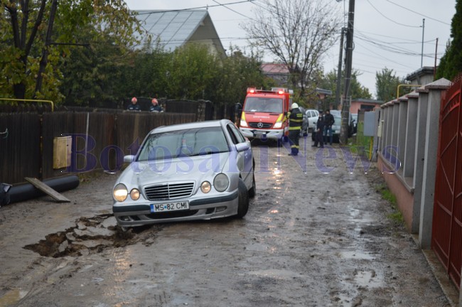 VIDEO O stradă din Botoşani s-a surpat şi o maşină a rămas împotmolită