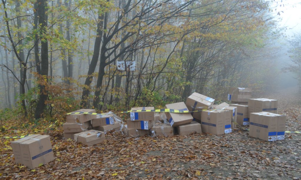 Mii de pachete de țigări de contrabandă, ascunse pe un teren viran