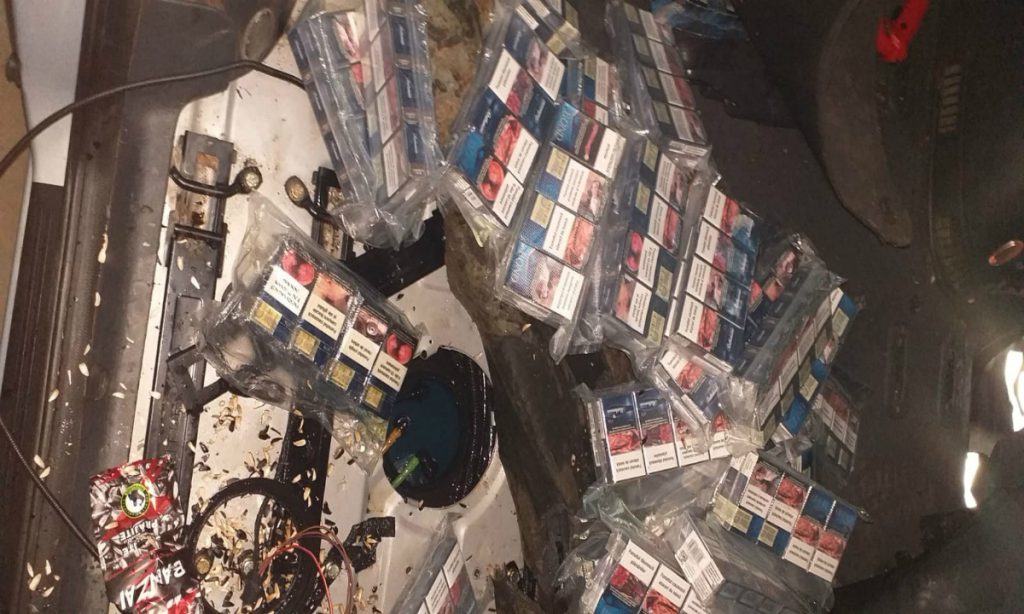 Colete cu țigări descoperite într-un autoturism de teren. Contrabandiștii, reținuți cu focuri de armă