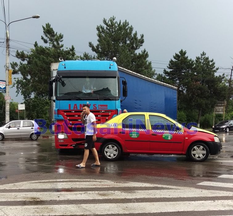 FOTO Accident! Un tir a intrat într-un taxi, într-o intersecție din Botoșani