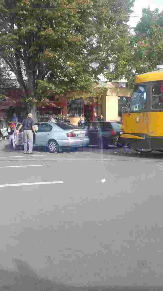 FOTO Tramvai blocat în trafic de un şofer neglijent