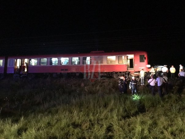 FOTO Ghinion! A fost lovit de tren după ce i s-a oprit motorul mașinii pe calea ferată