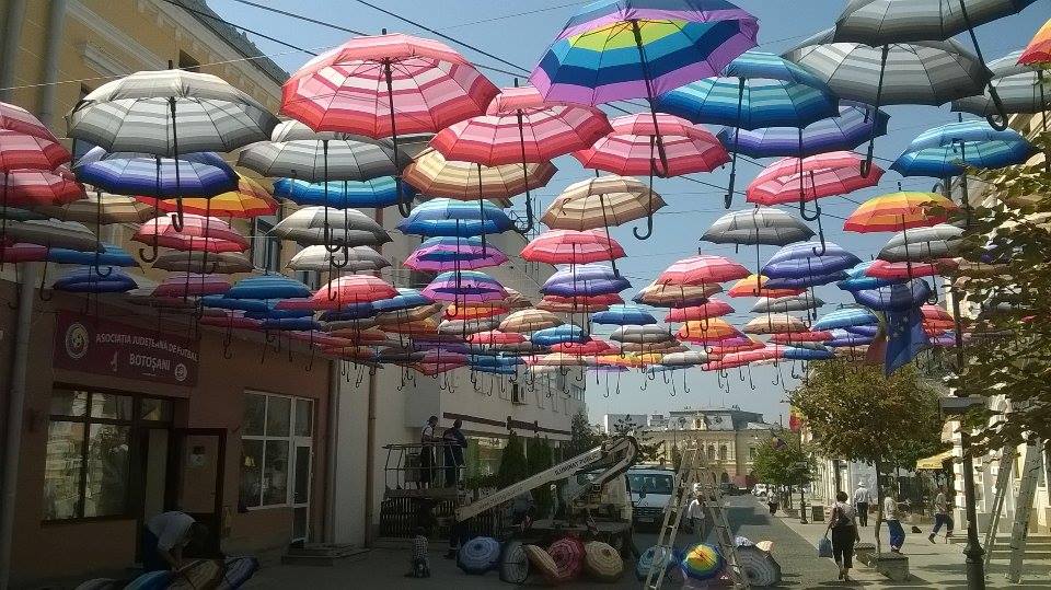 Centrul vechi al municipiului Botoşani începe să se coloreze la umbra a sute de umbrele multicolorate ce sunt agăţate deasupra străzilor pavate. Reprezentanţii primăriei au început să monteze umbrele în pregătirea festivalului SeptemberFest, după modelul oraşului Sibiu, primul care a fost împodobit cu umbrele multicolore. În total vor fi montate 400 de umbrele, din zona […]