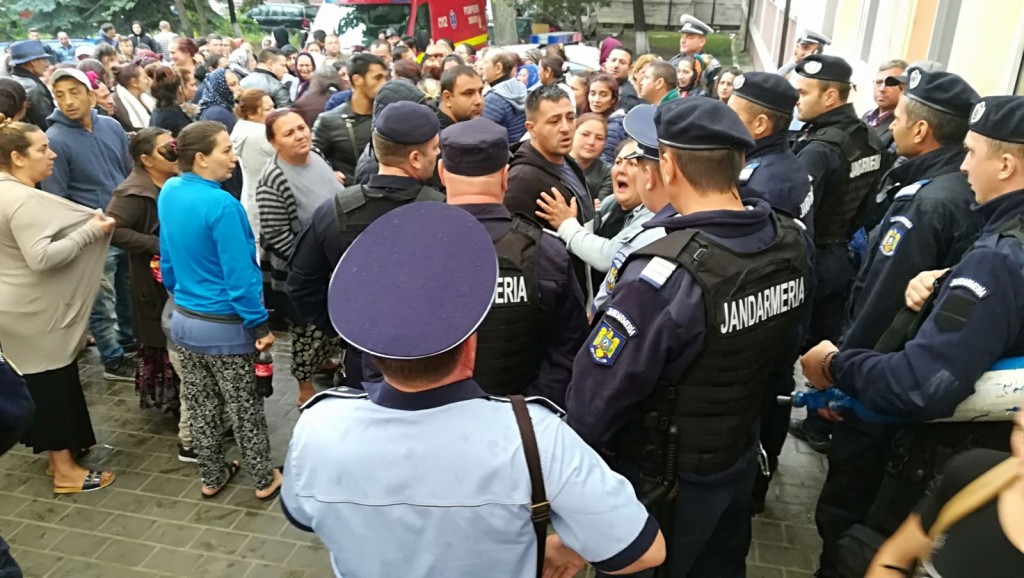 FOTO Unitatea de Primiri Urgenţe luată cu asalt de zeci de cetăţeni de etnie romă