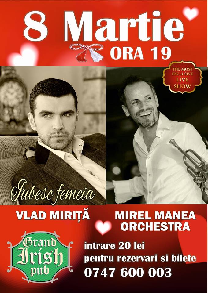 Tenorul Vlad Miriță, care a reprezentat, alături de Nico, România la Eurovision, va susține un concert, pe 8 Martie, la Botoșani. El va cânta, împreună cu Mirel Manea Orchestra, în Grand Irish Pub. Concertul va începe la ora 19.00, iar piesa serii se numește „Iubesc femeia”. Prețul de intrare la spectacolul lui Vlad Miriță este […]