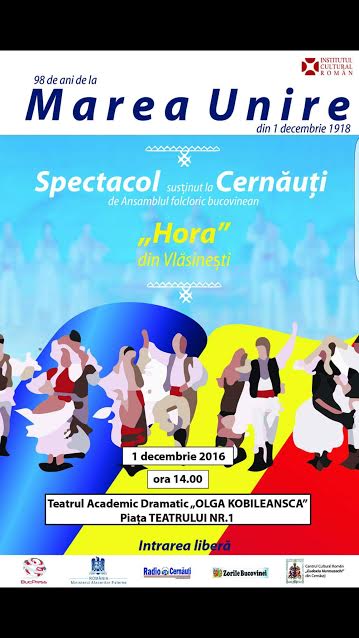 Astăzi, 1 decembrie cu ocazia Zilei Naționale a României, Ansamblul Folcloric Hora din Vlăsinești reprezintă tradițiile românești la Cernăuți, în Bucovina, la ceremonia prin care se sărbătoresc 98 de ani de la Marea Unire. „1 decembrie 1918 reprezintă actul de voință al națiunii române. Sunt mândru că de Ziua Națională a României tradițiile culturale din […]