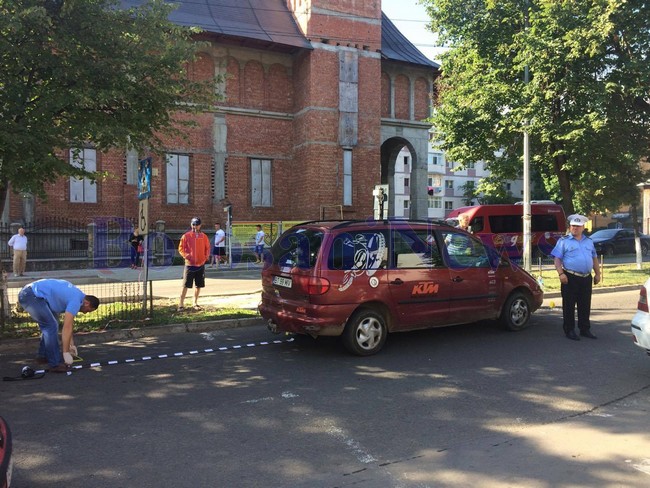 FOTO Adolescent lovit pe trecerea de pietoni de o maşină ce a ajuns apoi într-un gard