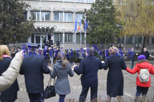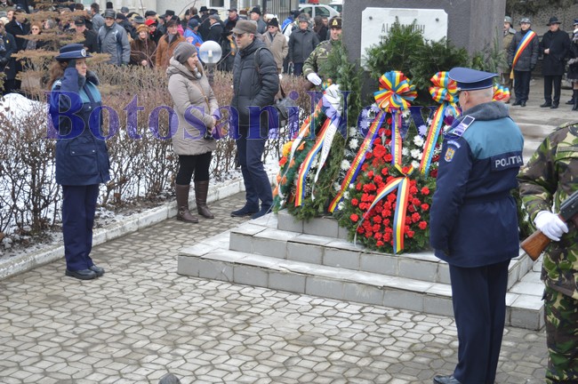 FOTO Depuneri de coroane de flori şi hora unirii în faţa IPJ Botoşani